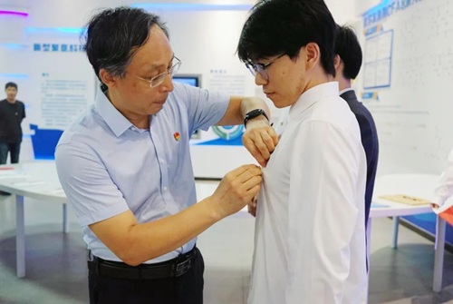 学院党委书记王介忠为新党员佩戴党员徽章后对新发展党员提出三点要求:一要筑牢信仰之基,把学习党的创新理论作为终身课题,特别要深学细悟习近平总书记关于科技自立自强的重要论述;二要争当先锋表率,在攻克卡脖子技术中彰显党员担当,以学院实验室、研究院为平台建功立业;三要永葆清廉本色,严守学术道德和科研伦理,做德才兼备的新时代化工人。他强调:希望大家永远记住今天这个特殊日子,在聚氨酯研究院的宣誓不仅是一种荣誉,更是沉甸甸的责任。