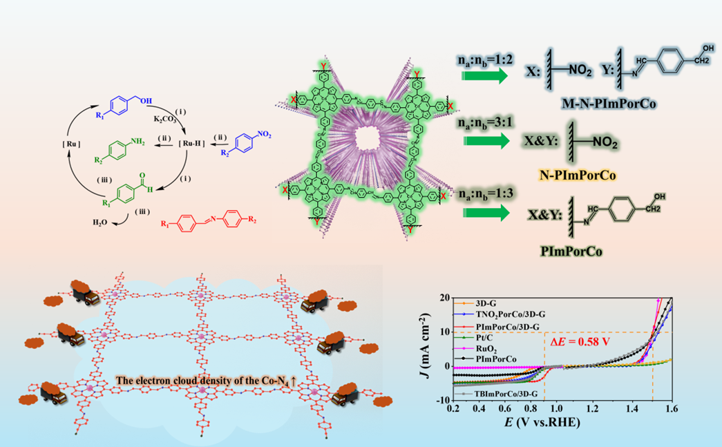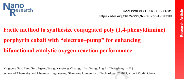 近日,我院燃料电池研究所李忠芳教授在新型全共轭卟啉类COFs的结构设计及催化剂电子调控氧催化性能提升取得重要进展,相关成果以“Facile method to synthesize conjugated poly (1,4-phenyldiimine) porphyrin cobalt with “electron–pump” for enhancing bifunctional catalytic oxygen reaction performance”为题发表在SCI一区期刊Nano Research上。(Nano Research, 2025, 18, 94907789.)