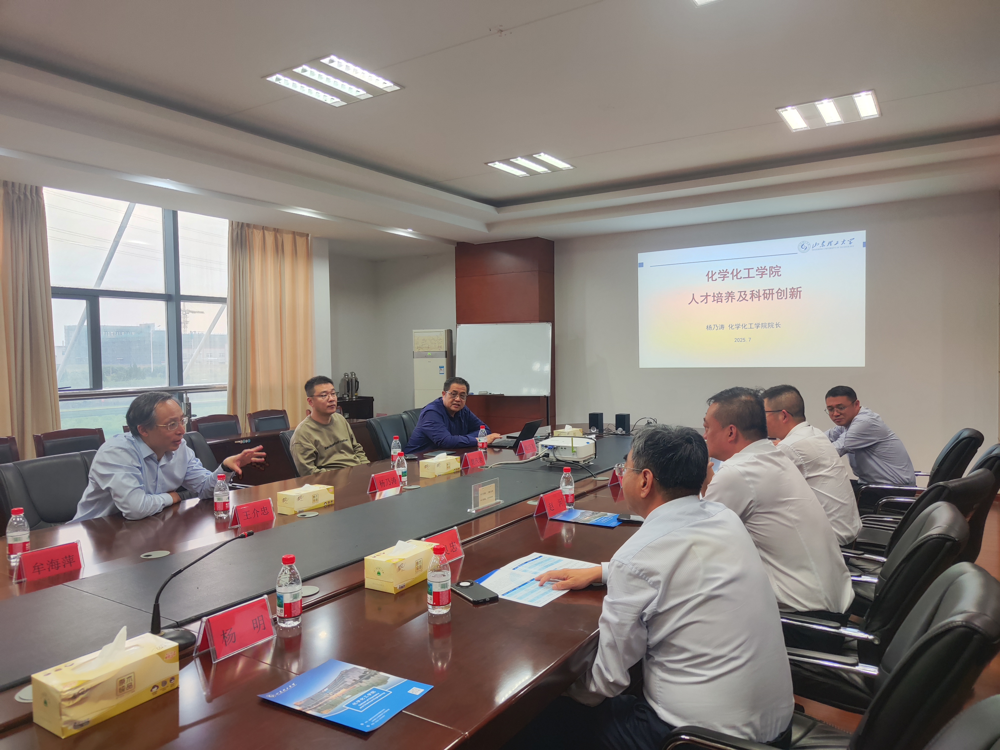 在辰聚(苏州)科创发展有限公司,公司相关负责人陪同参观公司展厅,展示了辰聚公司在化工新材料领域的技术实力与创新成果。座谈会上,校企双方围绕科研合作、企业服务、人才培养等方面开展深入交流。杨乃涛强调学院始终坚持以服务地方经济社会发展为导向,期待与辰聚公司在科技成果转移转化、智慧化工创新及高端化工人才培养等领域开展产学研协同工作,通过优势互补,携手打造产学研深度融合与共赢发展的新范式。