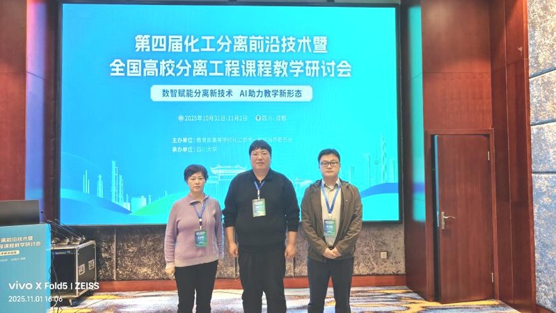 近日,第四届化工分离前沿技术暨全国高校分离工程课程教学研讨会在成都顺利召开。本次会议由教育部高等学校化工类专业教学指导委员会主办,四川大学承办,汇集了来自全国40余所高校与企业的200余位专家学者。本次会议以“数智赋能分离新技术,AI助力教学新形态”为主题,聚焦新时代高校课程建设的新要求、新任务、新内涵与新特色,积极探索分离工程领域教育教学、人才培养与科技创新的深度融合与协同路径,为课程教学改革提供有益借鉴。我院副院长黄昊飞、教授孟秀霞、化工系主任李玉超参会,并在分论坛作专题报告,充分展现了学院在化工分离工程课程建设与特色资源融合领域的探索成果。