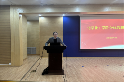 11月13日下午,化学化工学院在图书馆报告厅召开全体教职工会议。会议由学院党委书记王介忠主持,全体教职工参加。