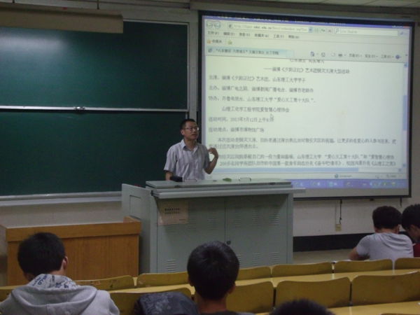 5月10日晚,由淄博广电总局、淄博新闻广播电台、淄博市老龄办主办,齐鲁电视台、我校“爱心义工第十大队”、山东理工大学艺心社、我院爱智慧心理协会举办的“心系雅安 共度难关”爱心义演义卖活动动员会在3号教学楼302教室举行。淄博新闻广播电台负责人郭女士,我院辅导员郭洪涛、爱心义工第十大队队员及爱智慧心理协会会员参加了此次动员会。