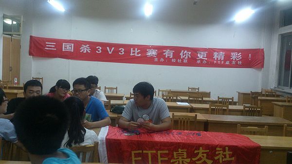 5月16日晚,由我校校社联主办,学院FTF桌友社承办的“三国杀3V3”比赛裁判培训工作在我校西校区13号教学楼402教室展开。FTF桌友社相关负责人及总裁判朱晓晨参与活动。