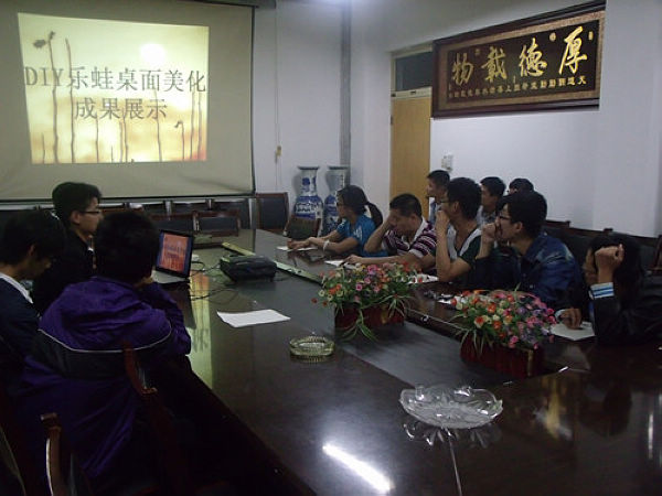 为增强安卓用户的个性化设计,5月26日晚,我院大学生手机协会在13号教学楼546会议室举办“DIY乐蛙桌面美化成果展示”活动,我院社团联合会各部门部长担任此次大赛的评委。