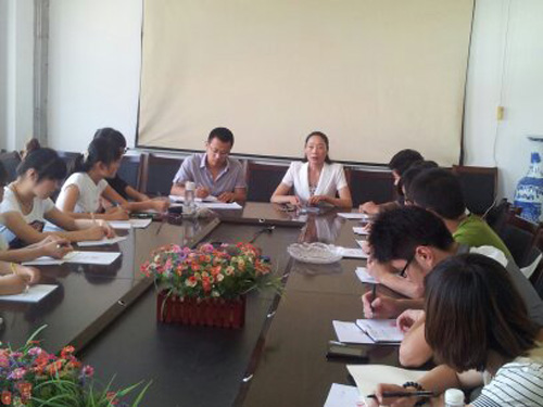 高举旗帜,端正态度,6月13日,我院党总支书记孙克迎,针对本期预备党员发展过程中所出现的问题及其今后的努力方向,与本学期预备党员在13号教学楼五楼会议室进行谈话,学院辅导员郭洪涛老师一同参加会议。