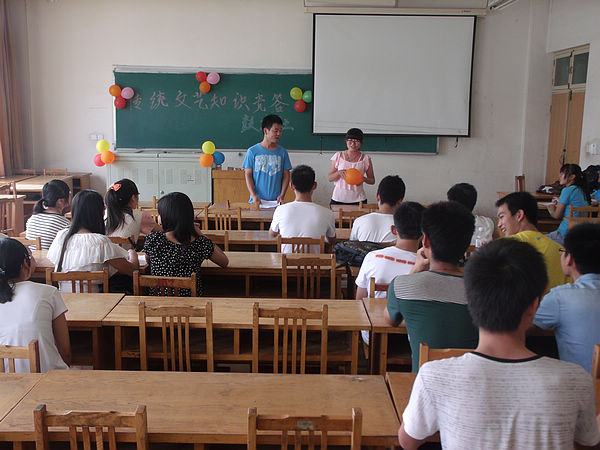 活动就中国古今传统风俗文化为切入点,旨在加深同学们对中国传统文化的了解,增强大家对中国优秀文化的民族自豪感和优越感。据负责人介绍,竞答题均为传统文化常识,涉及古今文学、书画、乐器、历史等多个方面,全面彻底的考察了大家对传统文化知识的了解。活动伊始,主持人介绍活动规则,并分小组进行角逐。每个小组由两名同学组成,以三个小组为单位进行选题。选题方式趣味十足,由小组内两名同学将一个装有竞答题的气球压爆,然后根据所抽到的题目进行竞答。活动还设有抢答,初、高级题目竞答等环节,气氛格外活跃。活动过程中,不时传出阵阵掌声为竞答精彩者加油,同时也为答题失败者给予鼓励。活动最后,由工作人员统计出各小组成绩并予以公布。