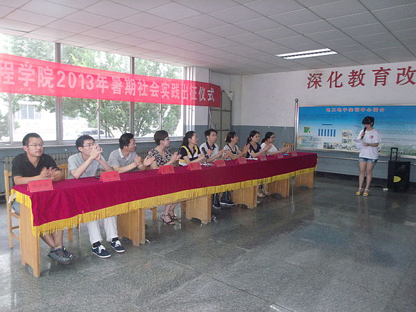7月12日下午,我院2013年大学生暑期社会实践出征仪式在我校西校区13号教学楼一楼南大厅举行。我院党总支书记孙克迎,团总支书记钟丽霞,辅导员老师郭洪涛、亓鹏、孙明、于珊,校团委社团部部长戴洁,马克思主义学院指导老师及我院社会实践全体队员参加仪式。