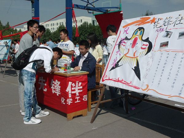 为招募会员给社团注入新力量,9月28日,我院六个社团在第三体育场参加了 “众团出击——社团集中宣传纳新”活动,我院社团联合会主席孔凡厚及各社团部长参加了此次活动。