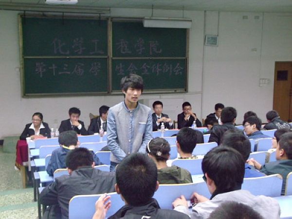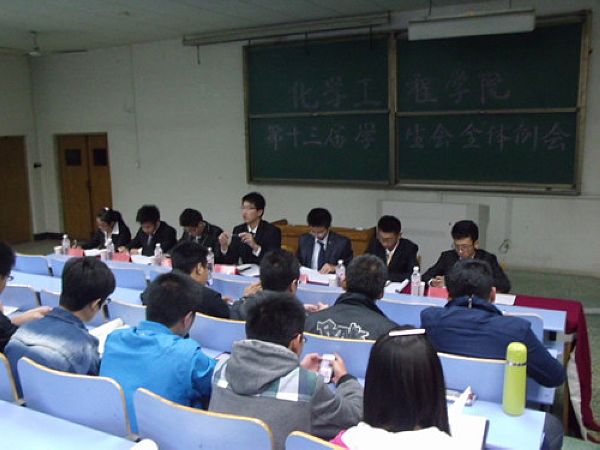 此次会议旨在增进干事对学生会各部职能的了解,同时对新学期各项学生工作进行预期计划。会议伊始,我院学生会主席张鹏飞首先发言,他在表达对学生会新成员的欢迎和期望的同时,开门见山,讲解学生会服务学生的性质,并对本学期的工作计划进行安排。与此同时,他对已举办的院迎新晚会各部之间紧密合作表示感激,要求各部在即将举行的校运动会上继续保持风格,加强联系、通力合作。会议中,他公布我院新出台的《化学工程学院关于进一步加强学风建设的规定》和《化学工程学院学生会规章制度》。此外,他还提到我院学生会“团结,务实,责任,创新”的八字方针中“责任”一条,不仅对自己负责,还要对家庭负责。随后,各副主席依次发言,对各自的工作和计划做了汇总。会议上,我院社团联合会主任孔凡厚慷慨激昂的言辞,博得了在场观众热烈的掌声。随着会议的进行,各部部长进行简短发言,现场气氛达到高潮。