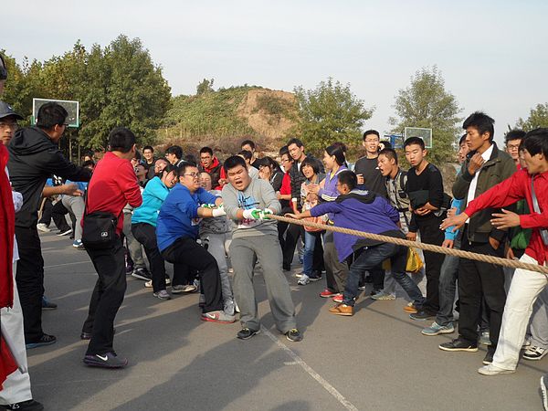 在拔河比赛开赛前,我院老师组织队员进行战略战术指导,每个队员都戴上了胶皮手套,以防麻绳对手的磨伤,同时也增打与绳子之间的摩擦。16进8,8进4的比赛中,我院学生齐心协力,在队员们“一二、一二”的口号声及啦啦队大声的加油助威声中,我院队员表现突出的表现顺利晋级。每场比赛过后,有专门人员为参赛队员揉肩放松。我院队员凭借强硬的实力一路斩杀进四强。在4强的排名赛中遇上强敌,止步四强。此次拔河比赛,不仅加强了同学的团队协作能力,更培养了同学们奋勇拼搏的精神及乐观向上的生活态度。