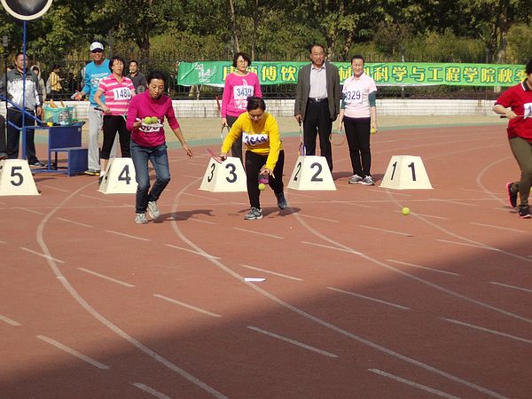 10月18日下午,我院教职工在我校秋季运动会上的托球跑比赛中表现抢眼,展现了我院教职工良好的身体素质和团队合作精神。托球跑比赛中,我院团总支书记钟丽霞和辅导员于珊名次靠前。在该项目的小组比赛中,钟老师稳稳地用羽毛球拍托着两个网球,一路领先,直达终点,将小组赛第一名的成绩收入囊中。于珊老师也在她的小组赛中拿到第二。