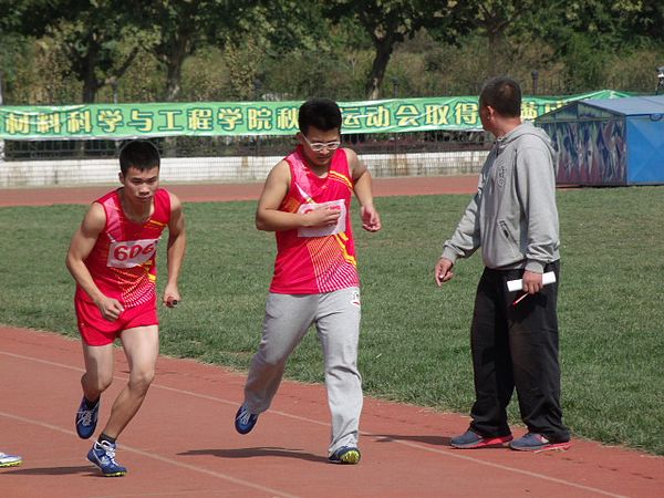 接力赛是考验团队之间综合实力的项目,单凭个人能力很难实现最终胜利。10月18日上午,男、女子4*100米接力赛初赛相继在第二体育场进行。我院的四名选手蓄势待发,发令枪一响,第一棒运动员箭一般冲了出去。随着最后一棒的交接和同学们的呐喊加油中,我院团队取得第4名并顺利进入决赛。他们虽疲惫但依然拼搏,依然坚持,直到冲向终点才如释重负。他们的坚持无疑成为运动场上一道亮丽的风景线。