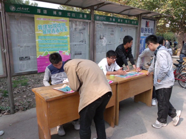 随着百度百科在现代社会的影响力逐步增大,10月19日中午,由互动在线科技有限公司主办、我校大学生手机协会承办的”第二届全国大学生百科编辑大赛”宣传活动在第二餐厅门口进行。