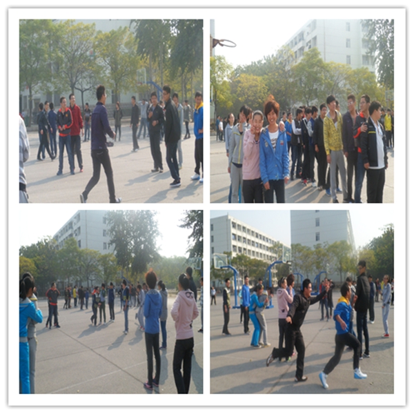 活动伊始,孔凡厚带领两个班的同学各站成一个大圈玩"贴树皮"的游戏来进行热身运动,同学们的笑声荡漾在体育场上,大家都玩得不亦乐乎。接着,大家集体观看国防学院举办的叠被子大赛。看着国防学院的同学们排着整齐的队伍、认真叠着被子,参观的同学们都忍不住拿出手机来想记录下这难得的一幕。活动的最后一个部分是同学们最喜欢的团体游戏环节。同学们根据活动相关负责人的指挥,每个班分成了两组,分别做了"齐心协力"、"珠行万里"和"时速极限"三个游戏. 在"齐心协力"活动中,在了解了游戏规则和玩法后,同学们就认真的练起来,而在之后的比拼中,同学们喊着响亮的口号,统一步伐,齐心协力,直达终点。虽然有的队伍没有拿到第一,但大家还是很高兴。