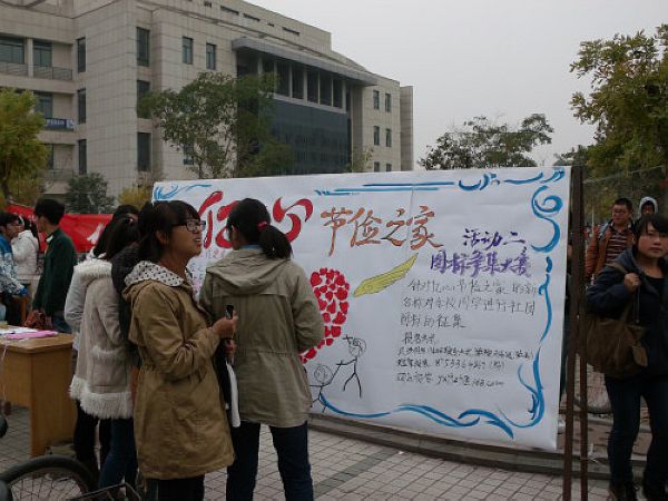 此次活动是亿心节俭之家正式更名后首次活动。据了解,此次“亿心十年乐”活动包括两个方面,一是面向全校进行社团图标的征集,并进行评比,对获奖的同学进行奖励,优秀的图标还会被采用为社团正式图标。另一个活动是 “新老会员齐欢乐”活动,主要包括亿心节俭之家十年历程回顾、新老会员节目表演及视频录制等,同时欢迎同学积极参与到活动中。宣传现场的展板设计美观大方,吸引着路过的同学驻足观看,并向社团工作人员询问活动细节,工作人员热情耐心的进行讲解,宣传现场气氛活跃。