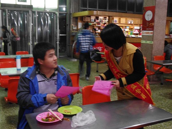 为响应学校号召,大力推进节约型校园建设,11月6日下午,由能源管理中心和校团委主办、我院亿心节俭之家承办的“三节(节粮、节水、节电)”活动第一部分在我校第一、二、三、四餐厅同时开展。亿心节俭之家全体成员参与活动。
