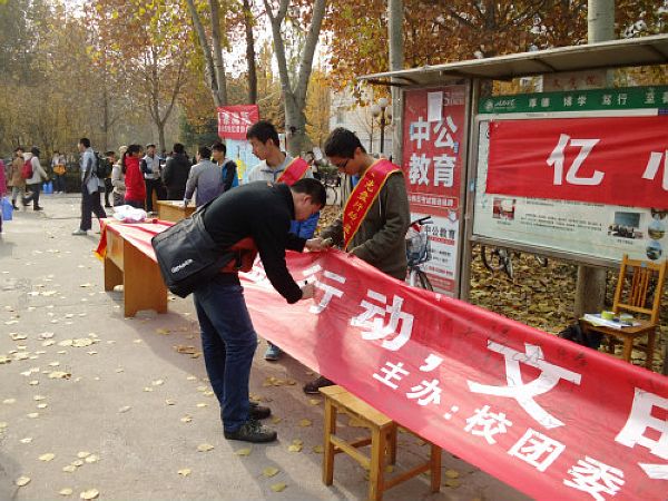 作为“三节”活动(节粮、节水、节电)的最后一个项目,此次照片展对一个星期以来活动中收集到的照片进行了展示,呈现出了存在于我们周边的浪费现象,同时与那些温饱问题都解决不了的贫困山区的孩子的照片做对比,引起同学们的深思。展板上写着醒目的大字“节约光荣,浪费可耻”,下面是餐厅里的浪费现象的照片,以及贫困孩子吃不上饭的照片,两组照片对比,让人既惭愧,又心疼,起到良好的警醒作用。照片的四周,是参加活动后的干事、会员们在“象牙塔光盘行动”中作为督察员的心得体会,让人深刻体会到节约从口头上落实到行动中的充实感。与此同时,社团人员向路过的同学发放“节粮、节水、节电倡议书”并再次举行签名活动,督促大家树立“节约光荣、浪费可耻”的观念,并切实落实到行动中。