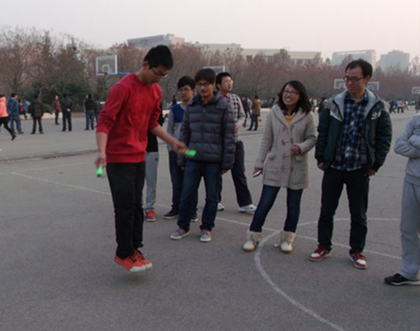 此次趣味运动会主要包括足球、篮球带球绕障碍,二人三足,趣味篮球,跳绳等项目。活动以三人一组进行分组,在每个项目结束后都会根据各组的表现给一个积分,最后根据总积分评奖。其中,两人三足比赛中,每组选出两人进行比赛,裁判首先将一人的左腿与另一人的右腿绑住,然后两人跑到标志物处再返回。这项比赛极大程度的考验同学们的默契程度,同时也是一项技巧性运动。有一组同学找到了一个小技巧,他们在跑的时候口中喊着“121”的口号并在跑前约定好,喊哪个口号时迈哪个腿,他们以很短的时间便完成了比赛。绳子绑住了腿,却绑不住同学们的心,每组同学都斗志昂扬、充满热情。最后,计时跳绳比赛展开,每组均派出跳绳高手来应战,不断挥动的绳子,跳绳的同学迅速的点地又弹起令在场所有人目不转睛,裁判嘴里的数字也应接不暇,大家纷纷感叹“高手在民间”。紧张的计时后,裁判宣布了比赛结果,每场比赛获胜的小组进行抽奖。