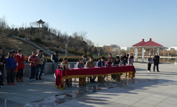 12月1日下午,由校社团联合会主办,我院鼓乐社承办的鼓技竞技比赛在稷下湖广场举行。我院社团联合会主席孔凡厚、亿心节俭之家会长陈学敏、浩宇化学社会长张超及社团顾问侯敏、尼玉雪、孟令森作为评委参加比赛。