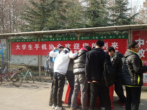 “节奏大师”是苹果平台和安卓平台上的一款老少皆宜的手机游戏,游戏方式以传统下落式音符玩法的为核心玩法,在传统敲击音符玩法基础上加入滑动音符,游戏过程中单键敲击与滑动屏幕的操作方式更容易让玩家体验到演奏音乐的无节操,丰富的歌曲类型、灵活的操作方式。社团举办此次“节奏大师挑战赛”旨在丰富校园课余生活,释放学习压力,促进同学间情感交流。在第二餐厅的宣传现场,同学们被这次新颖独特的比赛吸住眼球,他们在电话中相互转告并踊跃地报名,甚至有的同学拿出口袋里的手机在现场玩上一把,现场不时传来欢乐地笑声。