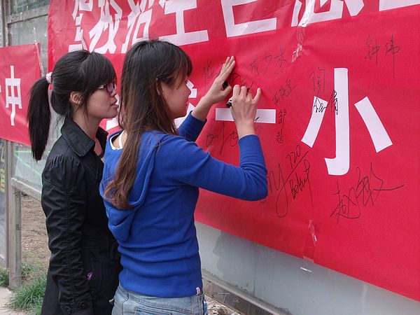 活动分为签名仪式、海报设计大赛以及刷微博比赛三项。此次活动创新之处在于借助微博进行强有力的宣传,通过微博@好友,使得更多的人了解了这个活动。同时,该社团在“地球一小时”活动的当天开展宣传工作,使得活动更具时效性和感染力。最先开展的是签名仪式。活动负责人向同学们分发活动宣传单页,并向大家讲解该活动及此次签名活动的相关内容。众多同学在餐厅宣传地点的条幅上签上自己的名字,对此类应对气候变化举行的活动表示支持。