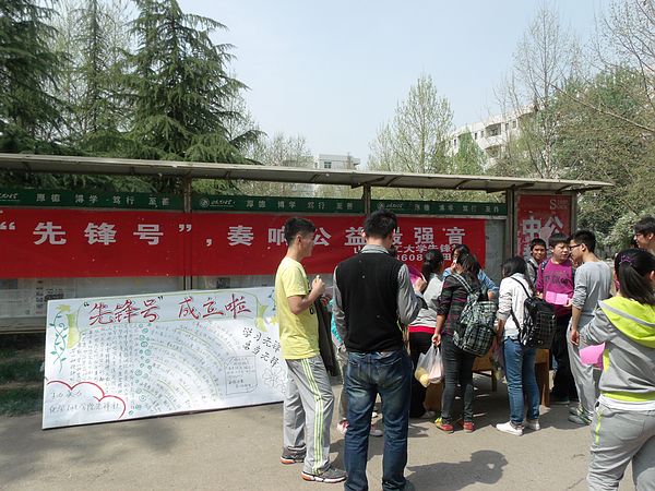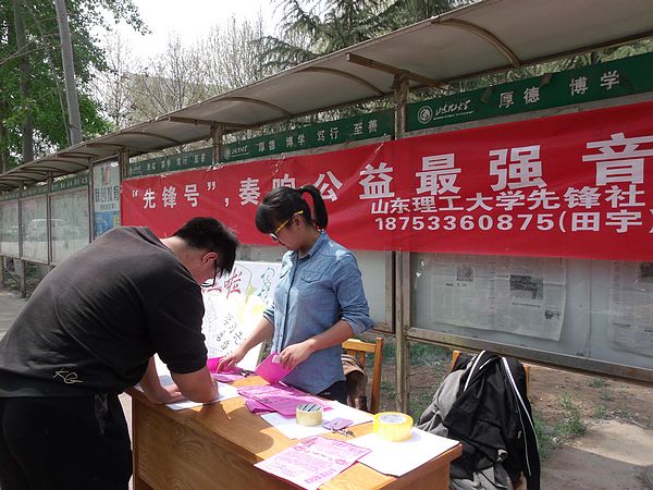 "先锋号"志愿服务班将以小组轮流服务的形式,每个月末的周日上午组织同学们到淄博客运总站进行志愿服务活动,并对表现优秀的同学给予证书等奖励,以此鼓励大家发扬助人为乐的精神,为社会公益事业发展献上自己的力量。漫天杨絮使春日的中午多了些躁动与不安,却挡不住大家服务社会的热情。精美的展板、热情的解说,不少同学都停下脚步上前询问,并在报名表上写下自己的名字。随着越来越多的名字出现在报名表上,社团成员们的努力得到肯定,大家脸上都露出欣慰的笑容。