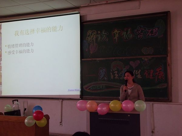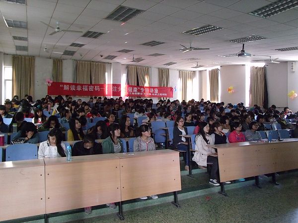 “你幸福吗?”,沈老师首先以一个幽默又深刻的问题与同学们展开讨论。她结合自己从事多年的心理健康事业所得出的经验,针对当代女性健康问题的出现,从心理和生理两方面来阐述女性健康的必要性和女性健康提升的具体做法。在谈到女性健康提升的具体做法时,沈老师结合女性的生理特点,指出端正生活态度和增强自我保护意识作为女性自我保护的重要地位。讲座进行过程中,沈老师结合PPT和她幽默活泼的话语与师生交流、互动,并不时赢得全场热烈的掌声。