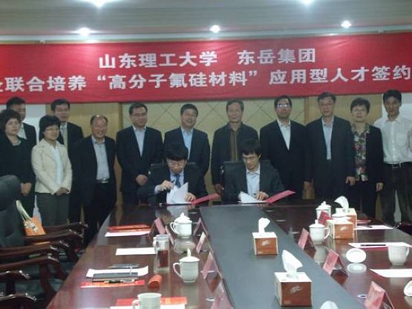会议伊始,我院院长禚淑萍总结了双方合作办学的历史背景和前期工作,明确了合作办学、合作育人、合作就业、合作发展的合作机制,提出了人才共享、设备共享、技术共享、文化互补、校企共赢的发展愿景。张新义校长对东岳集团多年来对我校的支持和关心表示感谢,并明确指出校企双方要通过人才培养、技术服务、项目研发等方式建立利益共同体,不断深化合作层次,推动企业技术进步,拓展我校办学模式。东岳集团张建宏董事长对我校高度重视联合办学表示感谢,表示集团将与学校积极配合,深入探索校企合作的新渠道、新方式,实现更深层次的全方位合作。东岳集团副书记李玉文、山东理工大学副校长邹广德分别代表双方签订了“高分子氟硅材料班”联合培养协议。