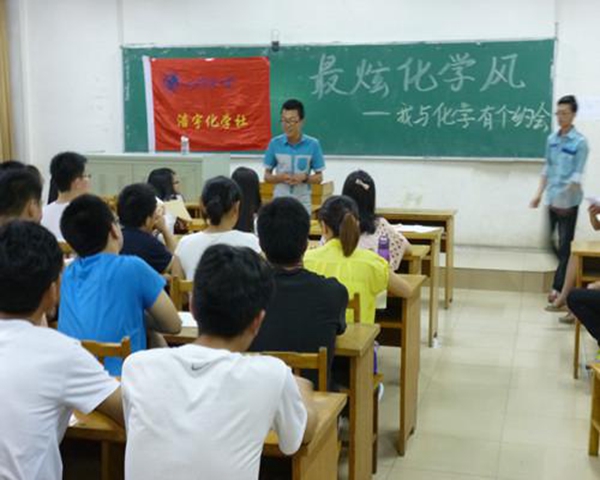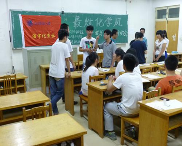 为使同学们的周末生活充实多彩,推出一档具有固定举办周期的活动,5月17日晚上七点,我学院浩宇化学社在13号教学楼401教室举行“最炫化学风”第二期活动——,会长呼酩杰、社团骨干及会员参加此次活动,现场气氛热烈。