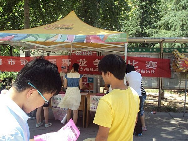 为了丰富同学们的课外活动,加深对传统文化的认识,由校社团联合会主办,鼓乐社承办的“第三届舞龙争霸比赛”将于6月15日举行。5月28日中午,鼓乐社在第二餐厅门口进行宣传活动,受到了大家的广泛关注。