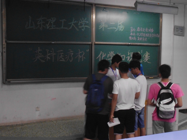为丰富大学生校园文化生活,培养大学生学习化学兴趣,浓厚我校学习氛围,6月7日晚,由我校校团委主办,我院团总支及浩宇化学社承办、山东英科医疗制品有限公司赞助的“山东理工大学第二届“英科医疗”化学知识竞赛在5号教学楼101、103、105三个教室同时进行。我院浩宇化学社相关负责人参与活动。