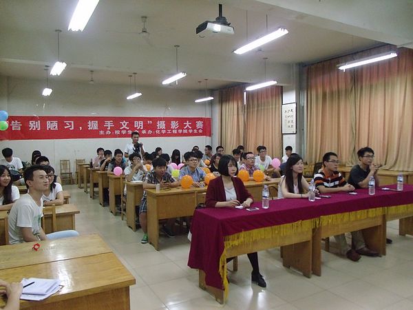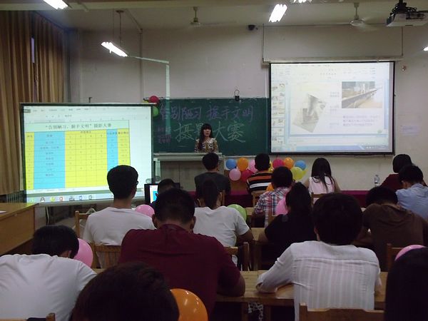 6月17日晚,由校学生会主办、我院学生会承办的“告别陋习,握手文明”摄影大赛在13号教学楼401教室举行。比赛评委由校学生会副主席高波、校电视台播音主持刘素姣、校学生会宣传部部长亓亚男、学院秘书中心主任于维德组成的专业评委以及三十几名大众评委组成。
