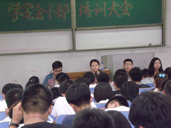 为总结前期工作,进一步提高学生会干部的工作能力,我院学生会干部培训大会于6月18日中午在5号教学楼103教室举行。我院辅导员亓鹏、孙明、于珊等三位老师参加大会,十四届学生会全体成员参加培训。