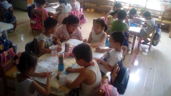 活动伊始,由主持人用浅显易懂又妙趣恒生的语言向小朋友介绍有关环境保护的相关知识,不时向小朋友们提出问题,小朋友积极响应,各种回答让我们感受到单纯与童真。其中,当主持人问小朋友如果小河被污染了,会有什么后果时,一个小朋友回答的是小鱼就不能吐泡泡了,孩子们的天空是快乐又明亮的,连雾霾也不忍去践踏这方土地。随后的环节是邀请小朋友们画出自己理想中未来世界的样子。天空、白云、绿地、大树,还有那和善的太阳以及温柔的云朵,孩子们的世界里还有那温暖的屋子,可爱的动物们。这是一方人与自然和谐共处的图景,孩子们的理想世界需要我们共同来打造。活动最后我们将带来的小礼品分发给了小朋友们,同时,与幼儿园的老师们一起为小朋友叠了一些手工。当我们走时孩子们已经活动完毕,挥着小手向我们说着再见。