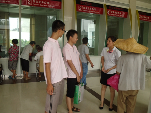 8月6日,我院关注“空巢老人”传承中华美德社会实践队到农村信用社了解老人养老金发放、领取等情况。