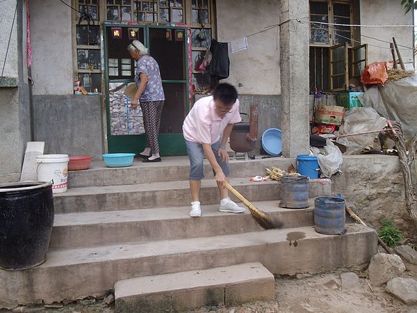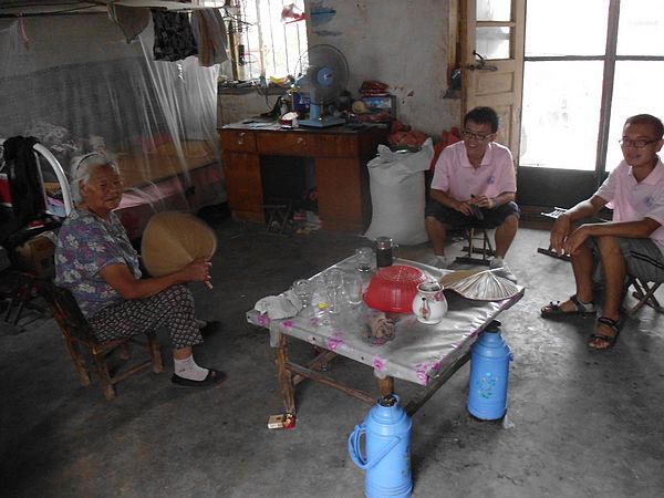 通过昨天的服务我们深切认识到“空巢老人”生活艰难、心灵孤独、缺少子女照顾等问题的严峻性,极大地鼓舞了我们要实施好“爷爷奶奶让我们给您当一天孙子”一对一服务活动的积极性。此次活动将持续一天,主要是帮助老人打扫卫生、为老人做一顿饭、与老人聊天、听老人讲述过去的经历、了解他们的光辉历史、感受他们的艰苦岁月、走进他们的内心。今天一对一的服务对象是年近80的孤寡老人裴奶奶,我们给她扫地,打扫卫生,帮助奶奶打水,陪奶奶聊天。裴奶奶家房屋简陋,家里因常年无人打理而杂乱,奶奶生活拮据夏天都舍不得开风扇,自己热就扇扇手里的蒲扇纳凉。听他讲述58年闹饥荒真是可怜“山上野菜都吃光了,没吃的就用果子皮(花生的外壳)蒸窝窝吃”。听听老一辈的艰辛生活,想想自己现在的幸福日子正是天壤之别。