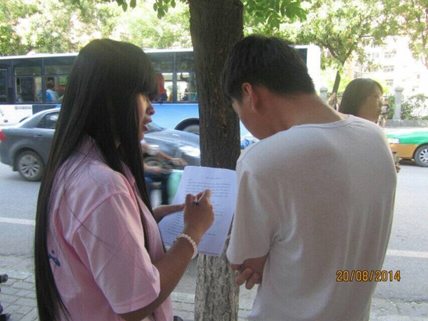 队员们在上午分头来到街头向来往的市民调查,市民们大都比较配合,停下脚步,为我们留下一份宝贵的答案。中午带着答案回到住处。下午来到延安大学图书馆,学生宿舍和体育场等地方对学生们进行调查活动。