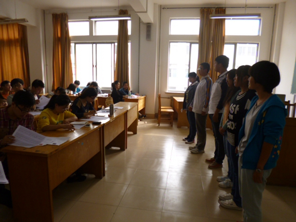 13号教学楼4楼走廊里人头攒动,等待面试的学生认真地准备着大学的第一次“考试”。面试现场,参与角逐的同学们通过各自独有的方式向面试老师和学生干部展现自己最吸引人的一面:有慷慨激昂的演讲、有挥洒自如的书法、有诙谐幽默的回答。面对老师们的问题,初入大学的学生表现出小紧张,但其中也不乏应对自如的回答赢得老师们的赞许。