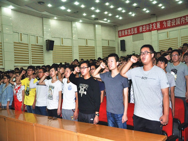 学生代表高波以“过来人”的身份向学弟学妹们献上自己的忠告:要给自己合理定位,亲身实践,努力奋斗,勤奋学习,做一个主动的发展者。随后,新生代表王冠英带领全体新生宣誓。