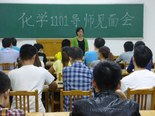 9月23日晚,柳玉英老师在13号教学楼402教室与化学1101班全体同学见面。