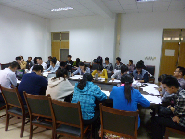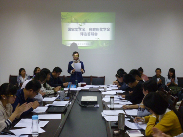 10月9日下午,我院在13号教学楼417会议室举办国家奖学金和省政府奖学金评选答辩会,院党总支副书记李冰强,化工系主任杨乃涛,应化系主任周晋,化学系主任赵剑英,冶金系主任张丽鹏,实验中心主任周子彦,学生科科长廖君华,辅导员老师孙明、亓鹏、郭洪涛、于珊以及各年级学生代表共19人组成评选小组参加此次评选。