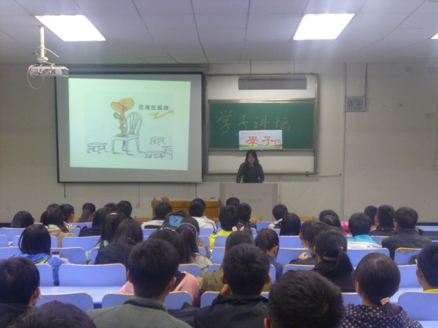 10月14日晚上,我院在5号教学楼101教室举办学子讲坛,此次学子讲坛邀请到校素质拓展部副主席张蓓担任主讲,14级全体学生参加。