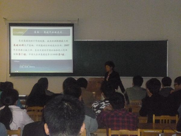 此次招聘会上,东岳集团人力资源处副处长魏晓菲女士首先全面简要的概括东岳集团的现状以及未来的发展趋势,她简述了东岳集团与我校多年的合作历史并对我校的人才水平给予了极高的评价。此外,魏晓菲女士还着重介绍了大学生比较关心的福利待遇等问题。最后,东岳集团对前来参加招聘会的毕业生进行了笔试,并公布了面试的时间和地点。