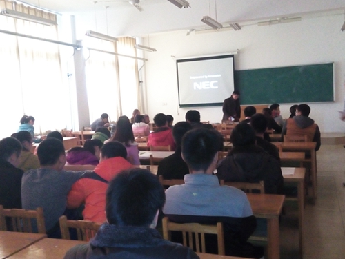招聘会伊始,公司人力资源部人员结合精彩的宣传视频为我院大四学生介绍公司概况、发展历程以及对公司未来的美好展望。她对我校人才质量表达了充分的肯定,并鼓励同学们积极应聘,将自己的才干在公司中发挥出来。随后是自我校毕业的学长、公司总工程师鲍工先生与在座学弟学妹们进行亲密交流。鲍工先生结合自身成长经历以及在公司丰富的工作经验向学弟学妹们详细介绍了公司在企业竞争中的优势,并以自己在公司的奋斗历程为例激励各位同学在以后的人生道路上努力拼搏,则必将作出属于自己的一番事业。交流期间,同学们踊跃提出自己心中的疑惑,会场气氛空前活跃。经过与鲍工学长的亲切交流,各位同学开始认真填写简历并将这份承载着希望的简历交到工作人员手中。