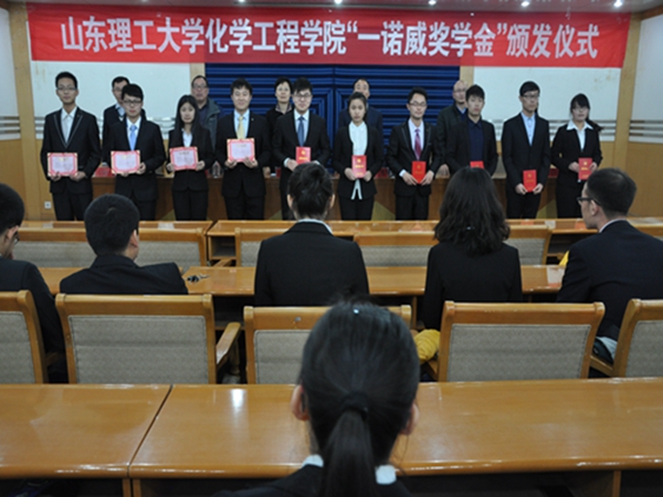 为表彰我院荣获“一诺威奖学金”的优秀学生,12月18日下午,我院于鸿远楼一楼报告厅举行“一诺威奖学金”颁发仪式,一诺威公司副总经理李健、企业管理部副经理陈伟、管理部经理助理陈东会、人力资源部经理刘瑞同、我院院长禚淑萍及院党总支副书记董云会出席仪式,此次颁奖典礼由刘瑞同经理主持。