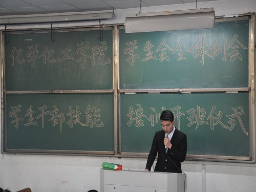会议伊始,主持人进行欢迎致辞。接下来,我院学生会主席卢峰向加入学生会的全体干事表示欢迎,并分享了他加入学生会的心得,就如何合理调配时间处理好学习与工作的关系,端正以服务师生为根本的动机,树立懂礼貌、讲文明的学生干部形象等方面进行详细讲述。随后,曹晓媛提到学生干部应具有奉献精神,要以身作则,为同学们树立榜样,牢记“不忘初心,方得始终”这句座右铭,认真完成自己的工作,同时她还讲到学院对学生学习的重视,并为同学们介绍了奖惩措施以此来督促同学们认真学习,不断提高自身素养,力争做全能型人才。最后,各中心分管主席分别对各中心隶属部门进行介绍,并对各部门取得成绩进行点评,他们希望同学们对工作要积极认真,以热情的心态去工作。在学生干部技能开班仪式中,卢峰说到要想在机遇与挑战的双重压力下立足于社会,就得不断提升自己的内涵和外延,培养学生干部的学习能力和自我管理能力,使学生干部能更好地服务于同学。