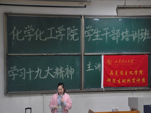 为进一步加强我院学生干部对于十九大精神的学习,11月16日下午,我院在4号教学楼203教室举办“十九大精神学习”培训会。我院邀请马克思主义学院研究生时政宣讲团做此次演讲。学生会全体大一培训成员参加此次培训会。