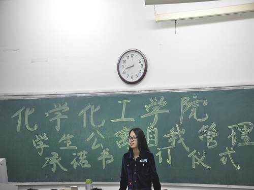 为全面贯彻我校“一精神”、“一规划”专题精神,进一步推进本科教育优质工程从而实现我校建设教学研究型大学目标,我院积极实施“师生联动、全员育人”学风建设方案。11月22日晚上,我院在13号教学楼401教室举行《学生公寓自我管理承诺书》签订仪式,参加此次仪式的有辅导员王菲以及学生代表。