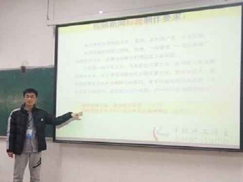 为提高我院新闻宣传中心成员的写作水平,11月25日晚,新闻宣传中心在13号教学楼401教室开展写作培训,我校新闻网负责人担任此次培训的主讲人,我院新闻宣传中心部分成员参加此次培训。