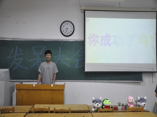 活动伊始,参与成员进行有序签到。首先,主持人致开幕词,并讲明此次活动的意义为:发呆是很好的放松方式,举办此次发呆大会可以使同学们更好的放松自己,在今后的学习生活中更好地悦纳自己,使同学们身心得到愉悦,生活会更有动力。紧接着,高玉珍带领同学们进行“抓手指”游戏,她先解释游戏规则,然后伴随着她的口令,大家紧张而又热情地开始了游戏,在游戏中出现失误的同学自主选择一项才艺来展示,随后大家轮流进行自我介绍。然后,参与的同学正式进入挑战环节,挑战者们在一分钟内让自己平静下来,保持放空自己的状态,静坐半小时后,大家踊跃报名分享自己的发呆感触,同学们的感想各不相同:大部分同学回忆起自己的高中生活,那时他们在睡前会回顾白天学习的知识,而现在大部分时间却用来玩手机,他们在发表感想时也不禁思绪万千;而有的人放空内心,什么都没有去想;还有的同学利用发呆时间规划了大学四年的生活等等。最后,发表感想优秀的同学们领取完小礼品后,主持人致辞,再次向大家阐释活动意义,希望各参赛者能有所体会。